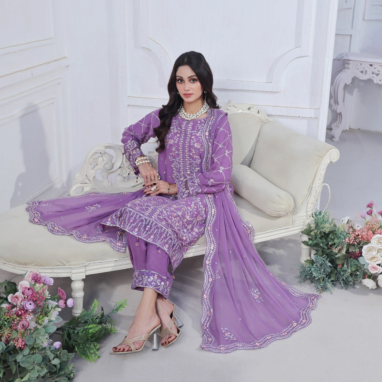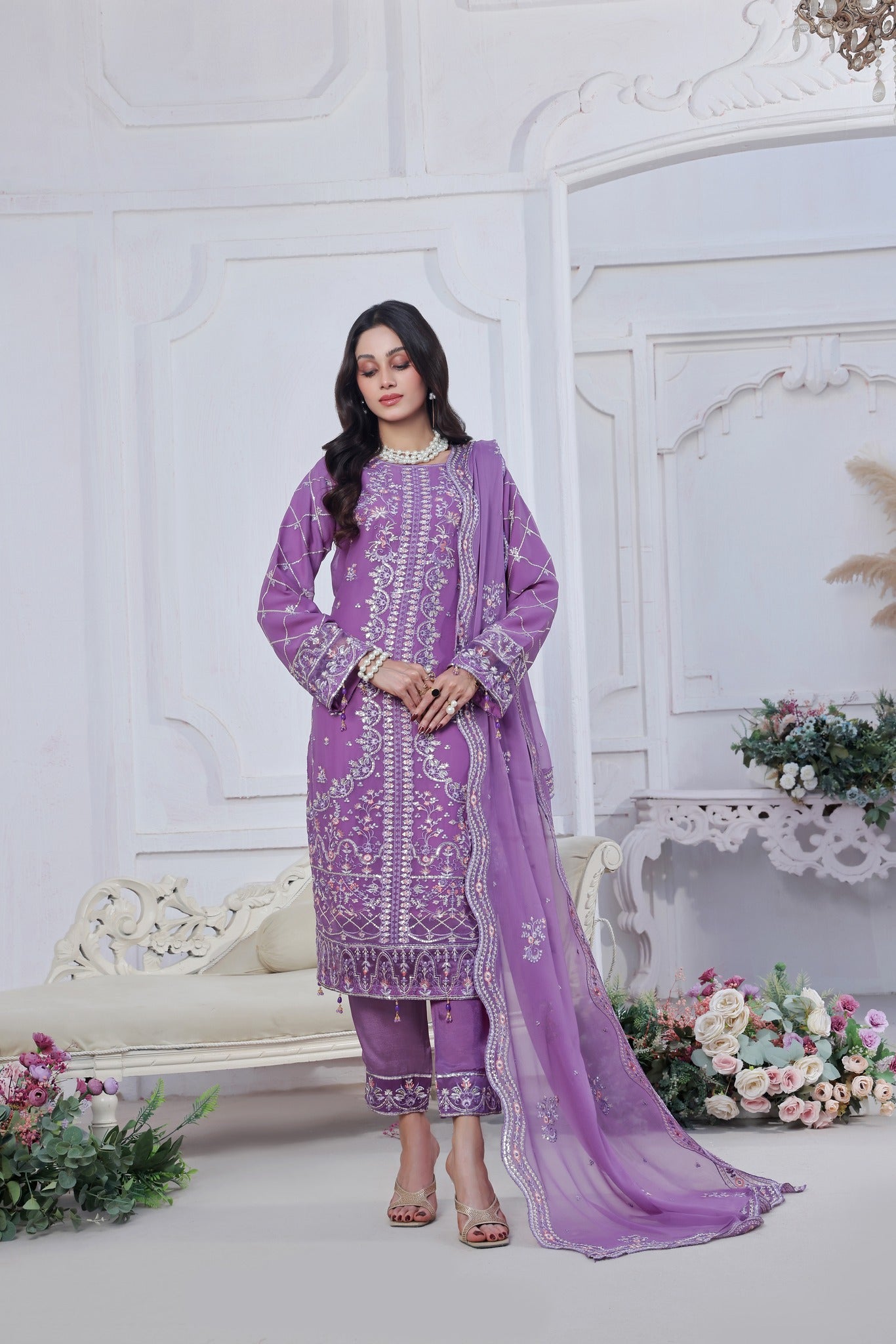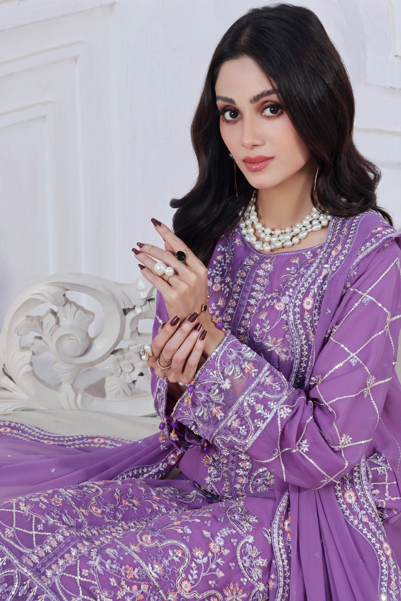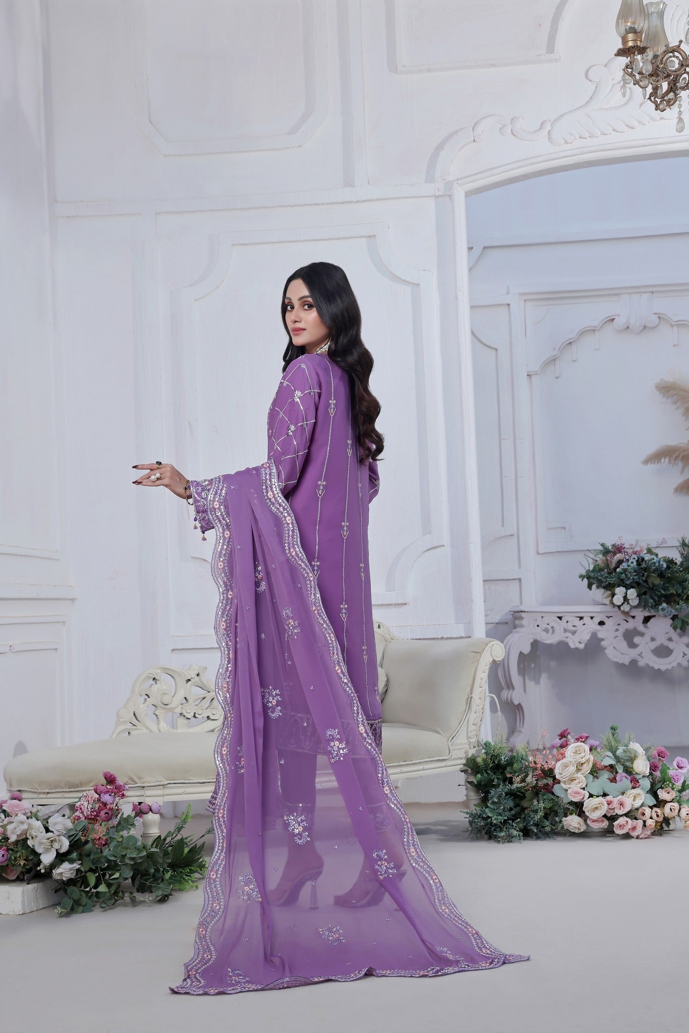 Step into sophistication with this beautifully crafted ensemble, made from premium chiffon fabric that flows with grace and charm. Adorned with exquisite hand embroidery, every stitch speaks of tradition and timeless beauty.