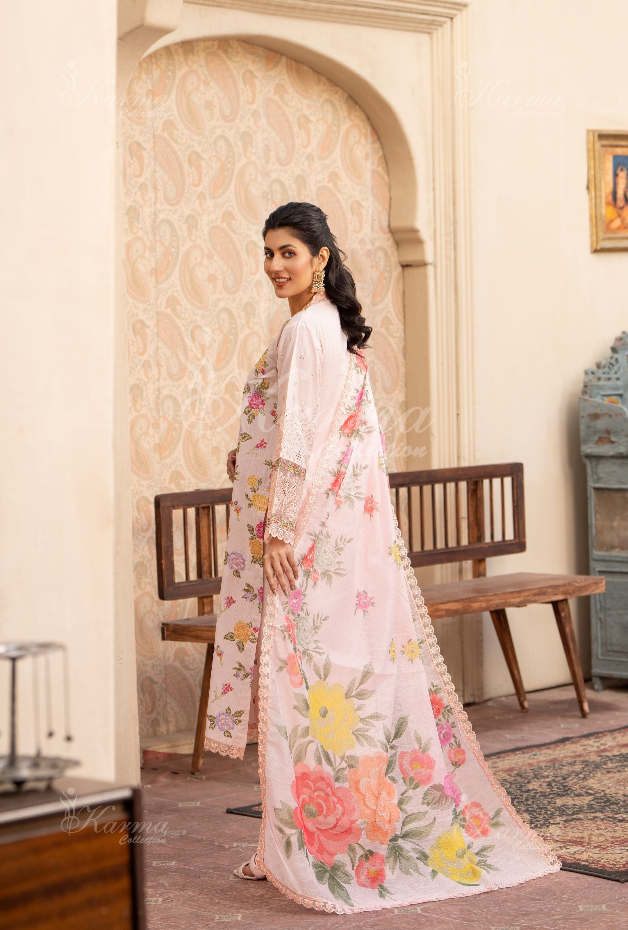 work, lace work & printed dupata
