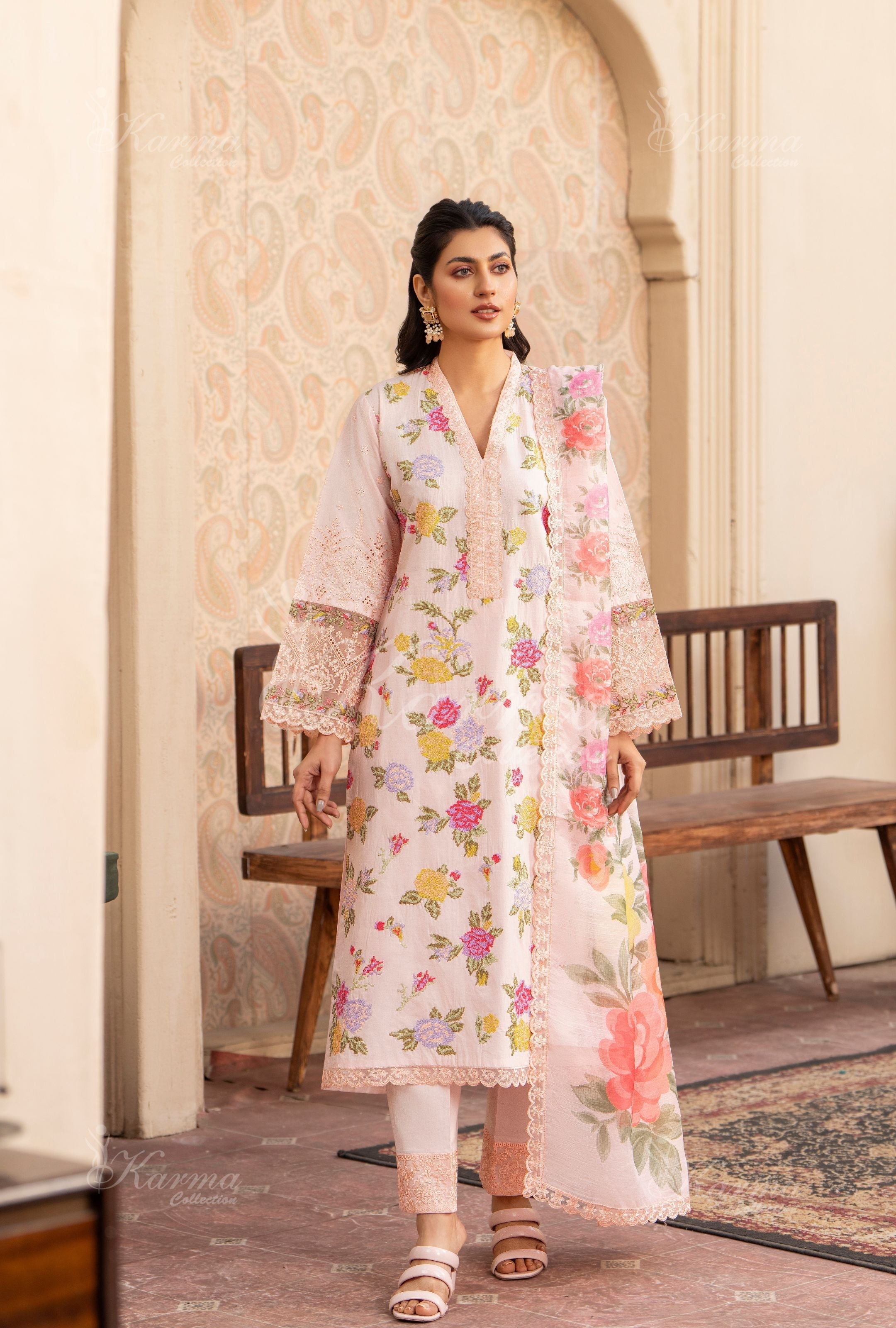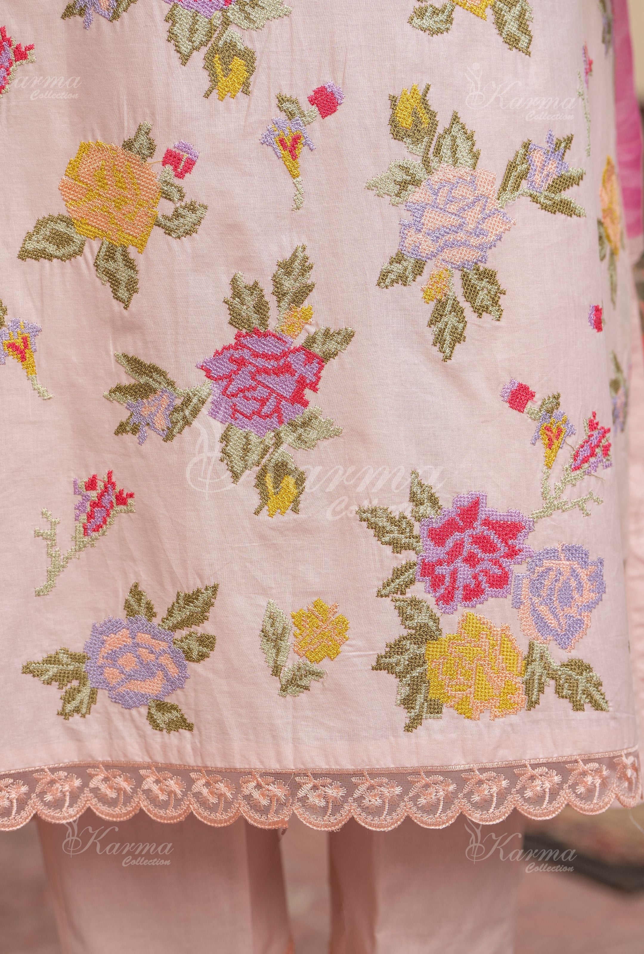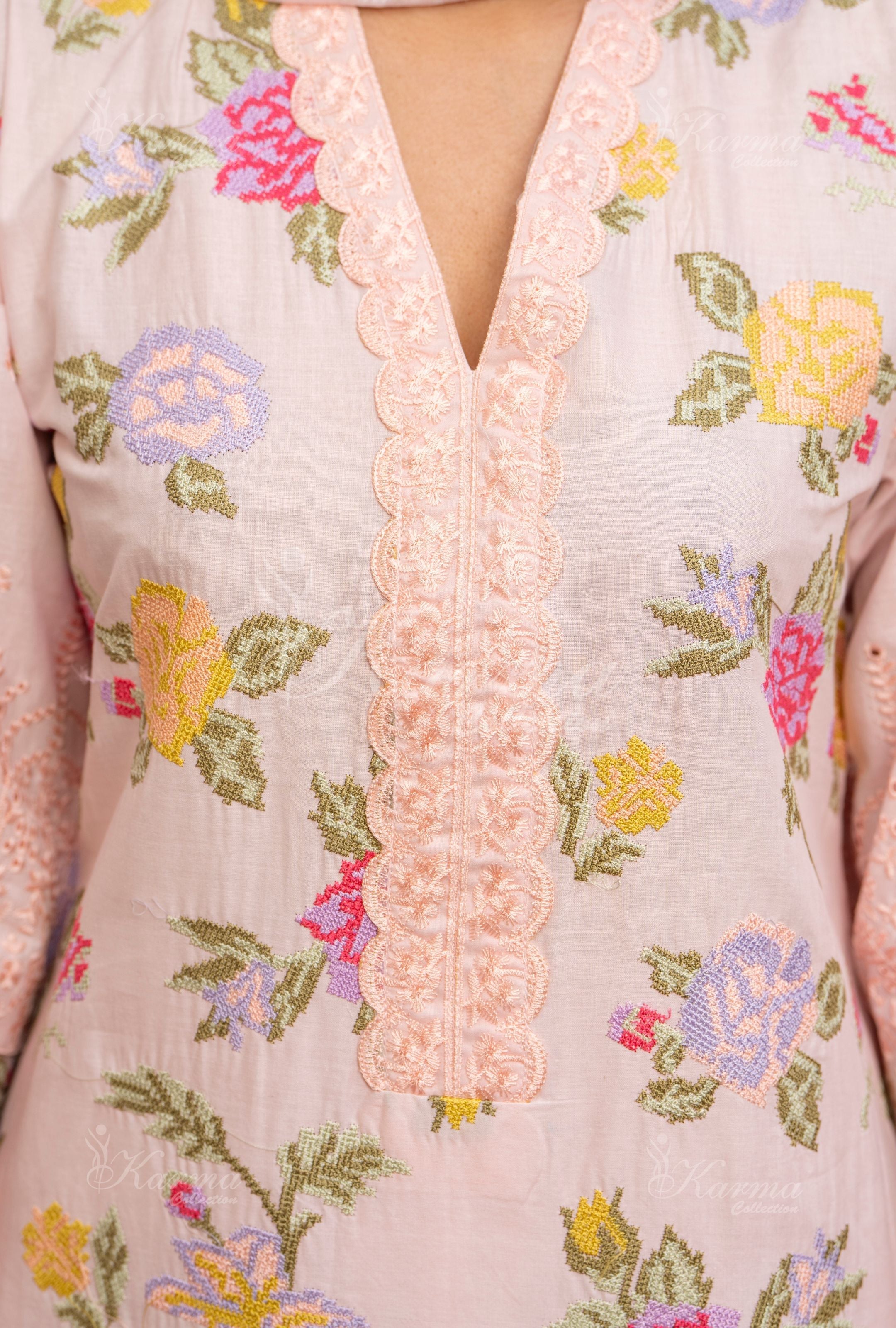 Lawn shirt with multi embroidery