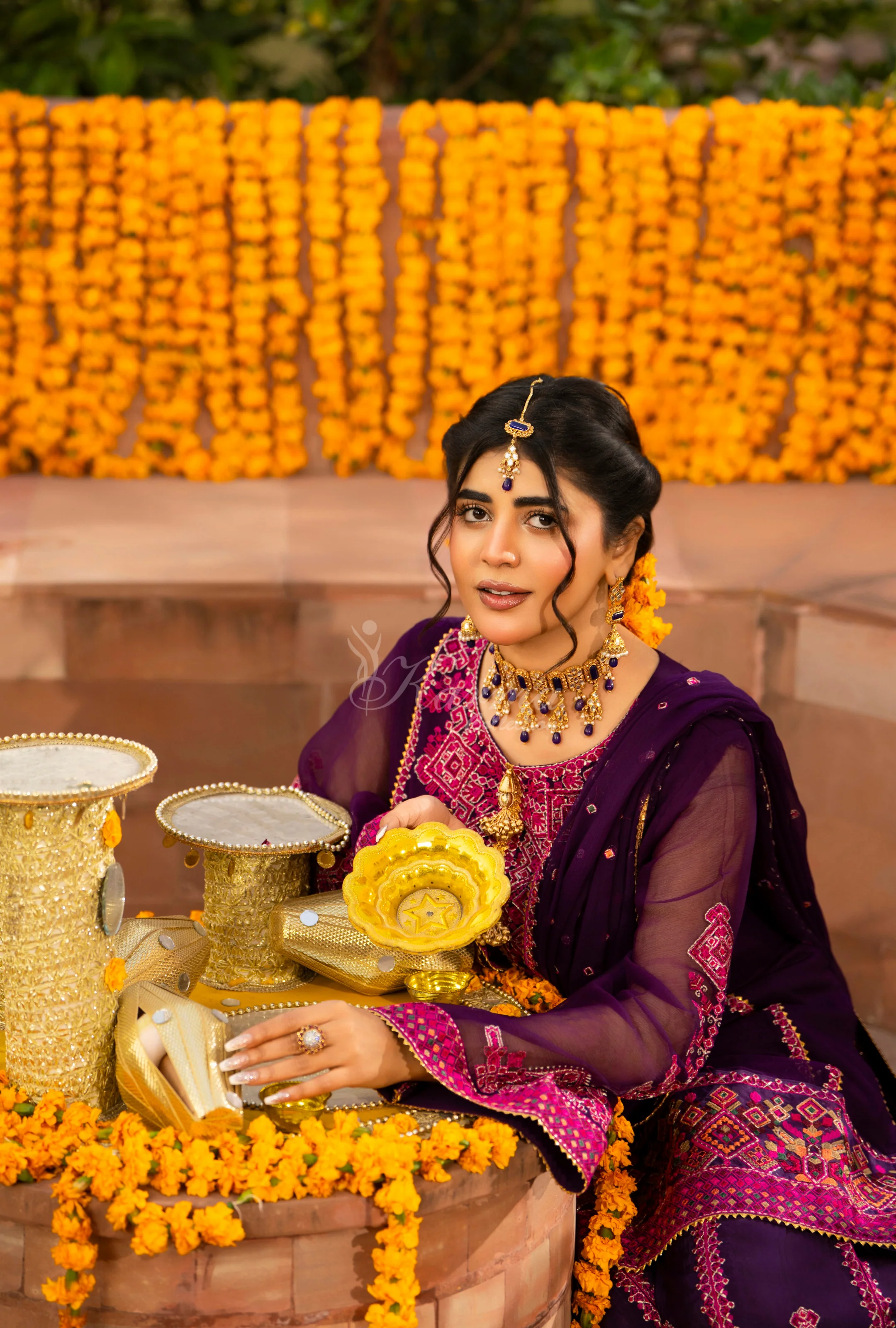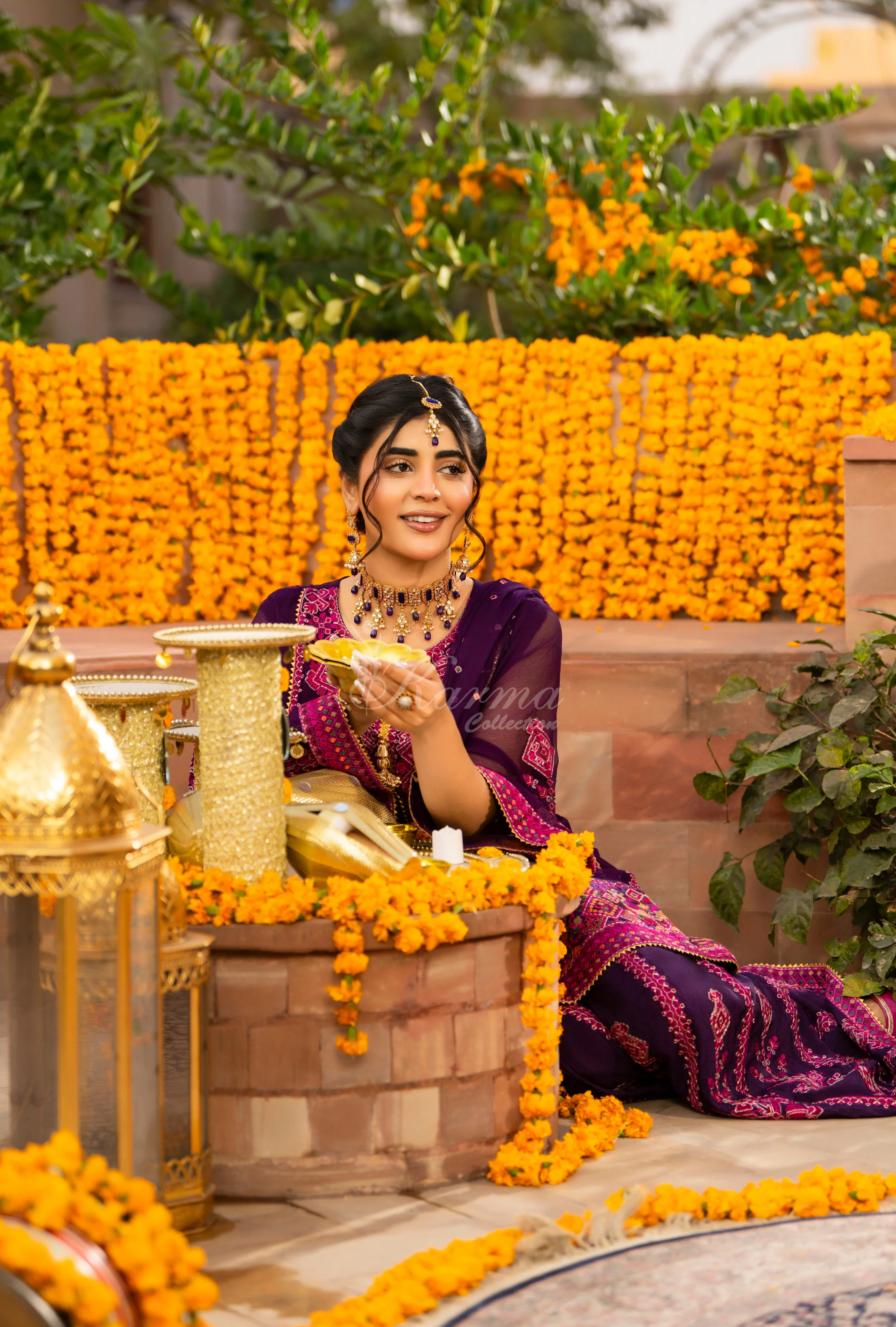 Chiffon 3 Piece Embroidered Hayat Karma Collection MAGENTA F-494