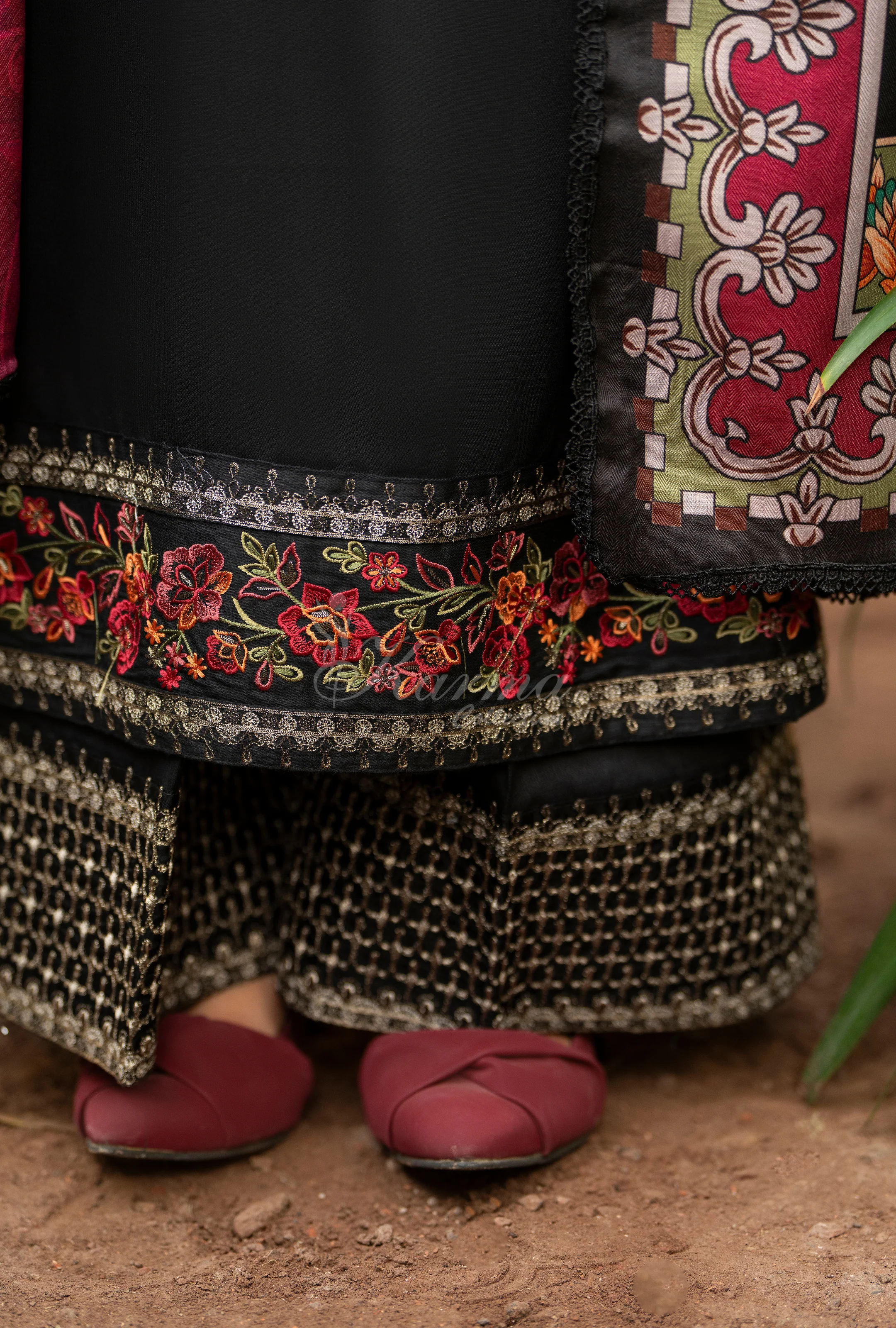 Karma Collection Winter Luxury Edition 3 Piece Embroidered Kotrai NIGHTFALL Shirt withDupatta & Shalwar for Elegant Outfits KC-1525