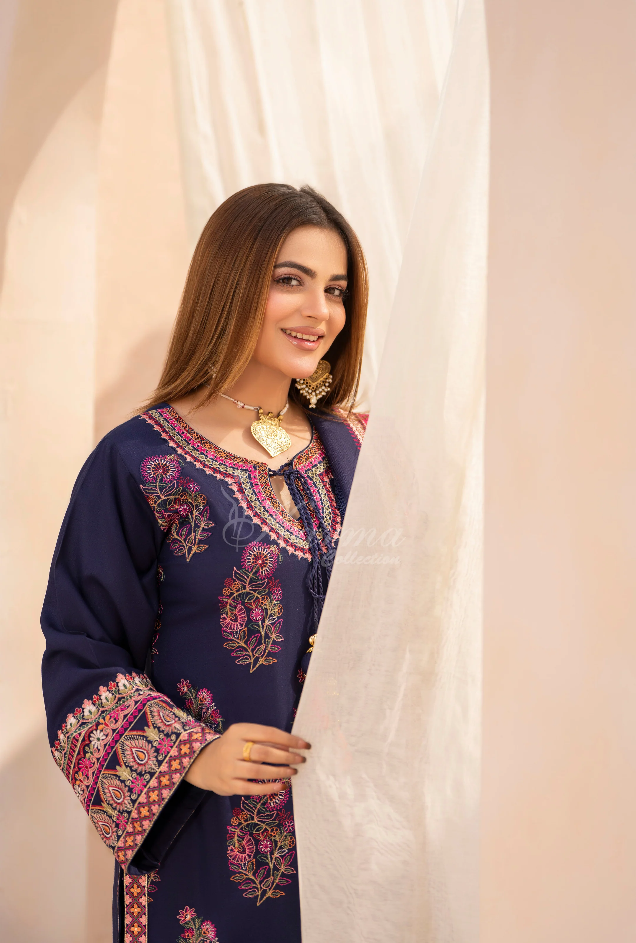Winter Luxury 3 Piece Embroidered Mishaal Karma CollectionALMOND SKU:KC-1534