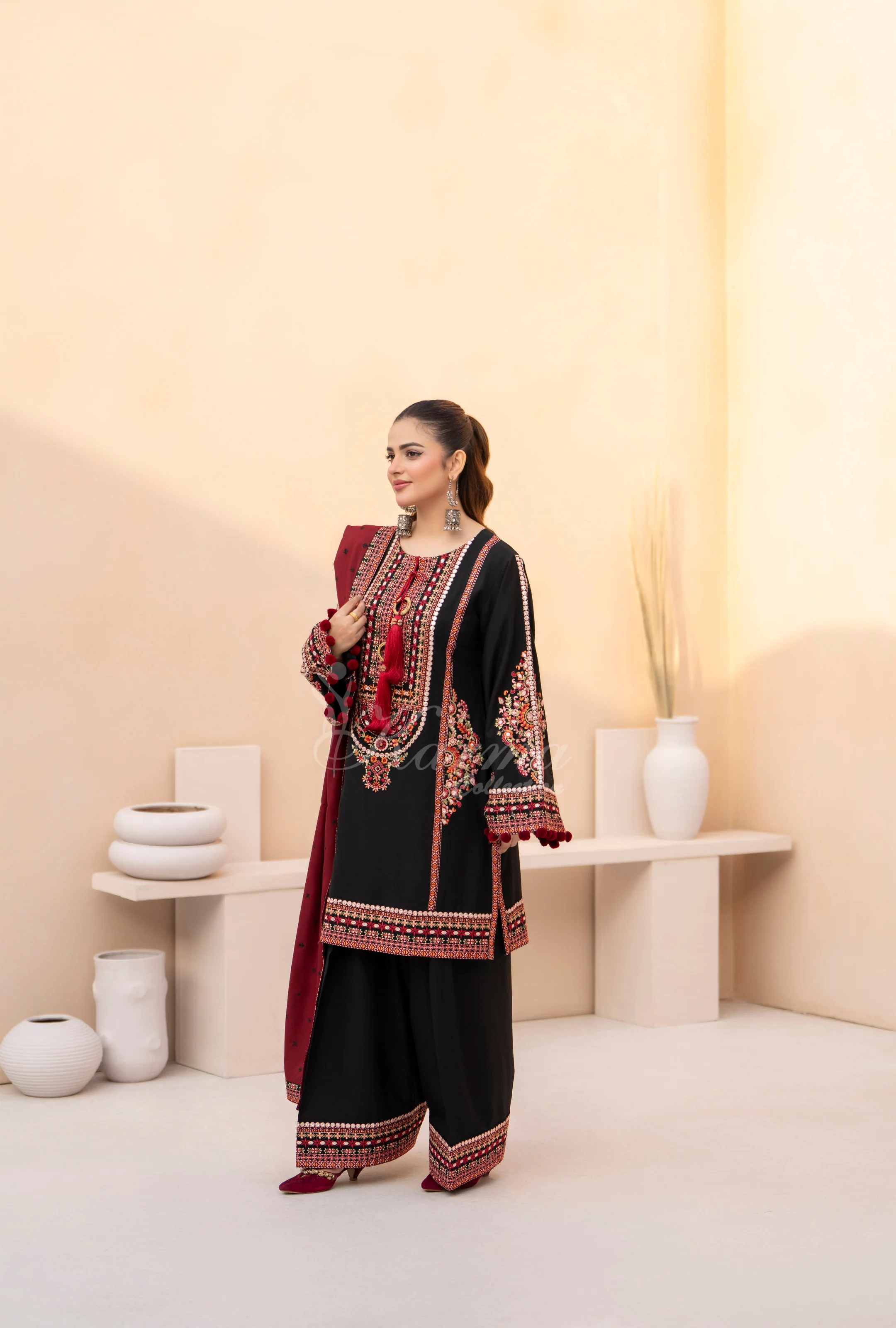 Winter Luxury 3 Piece Embroidered Mishaal Karma CollectionBLOODSTONE SKU:KC-1532