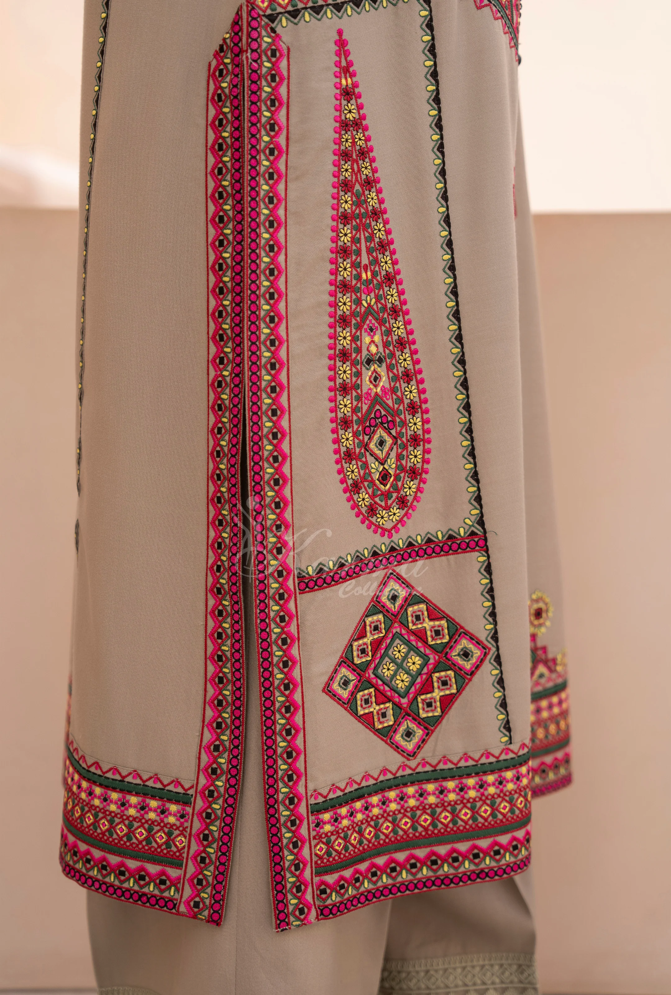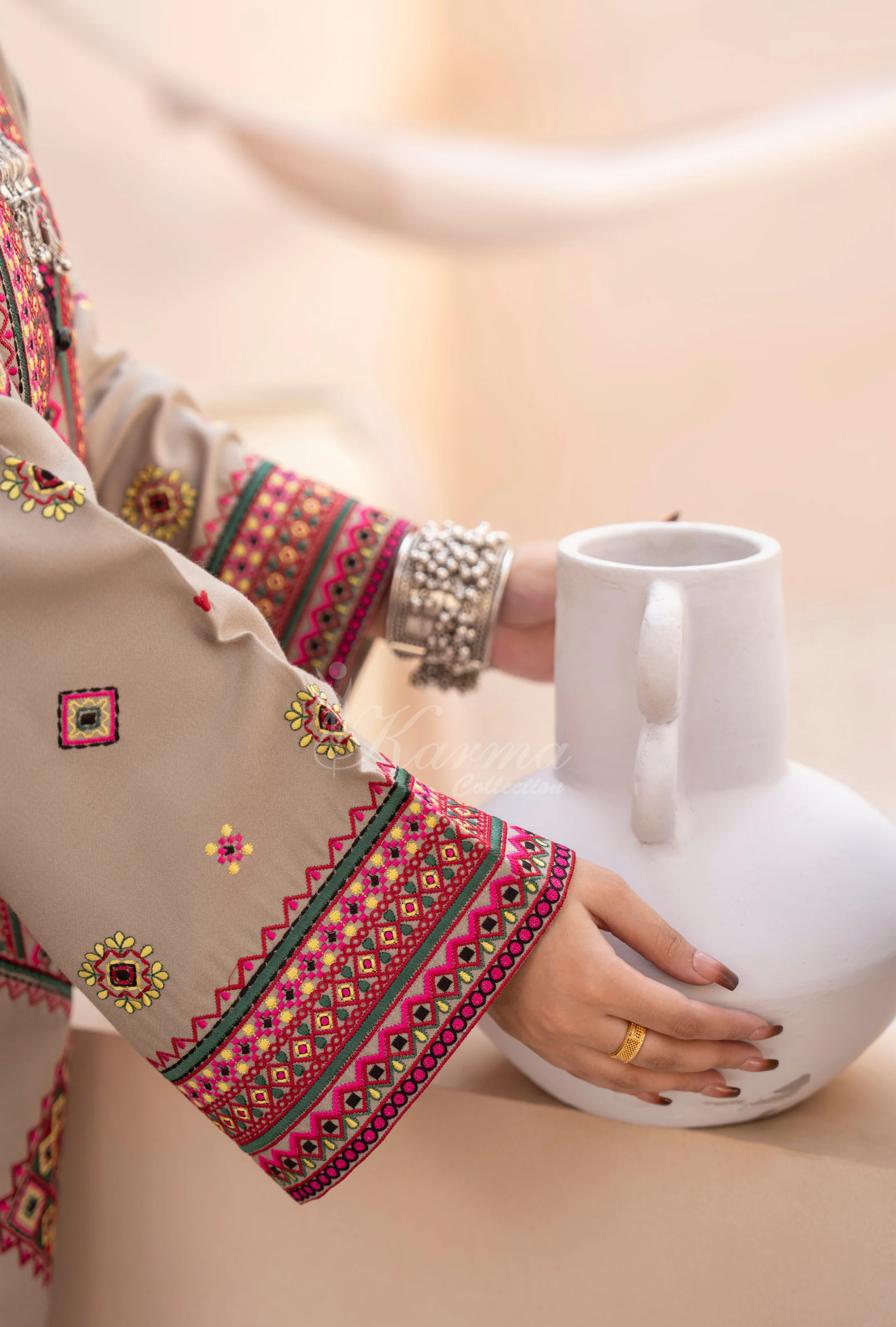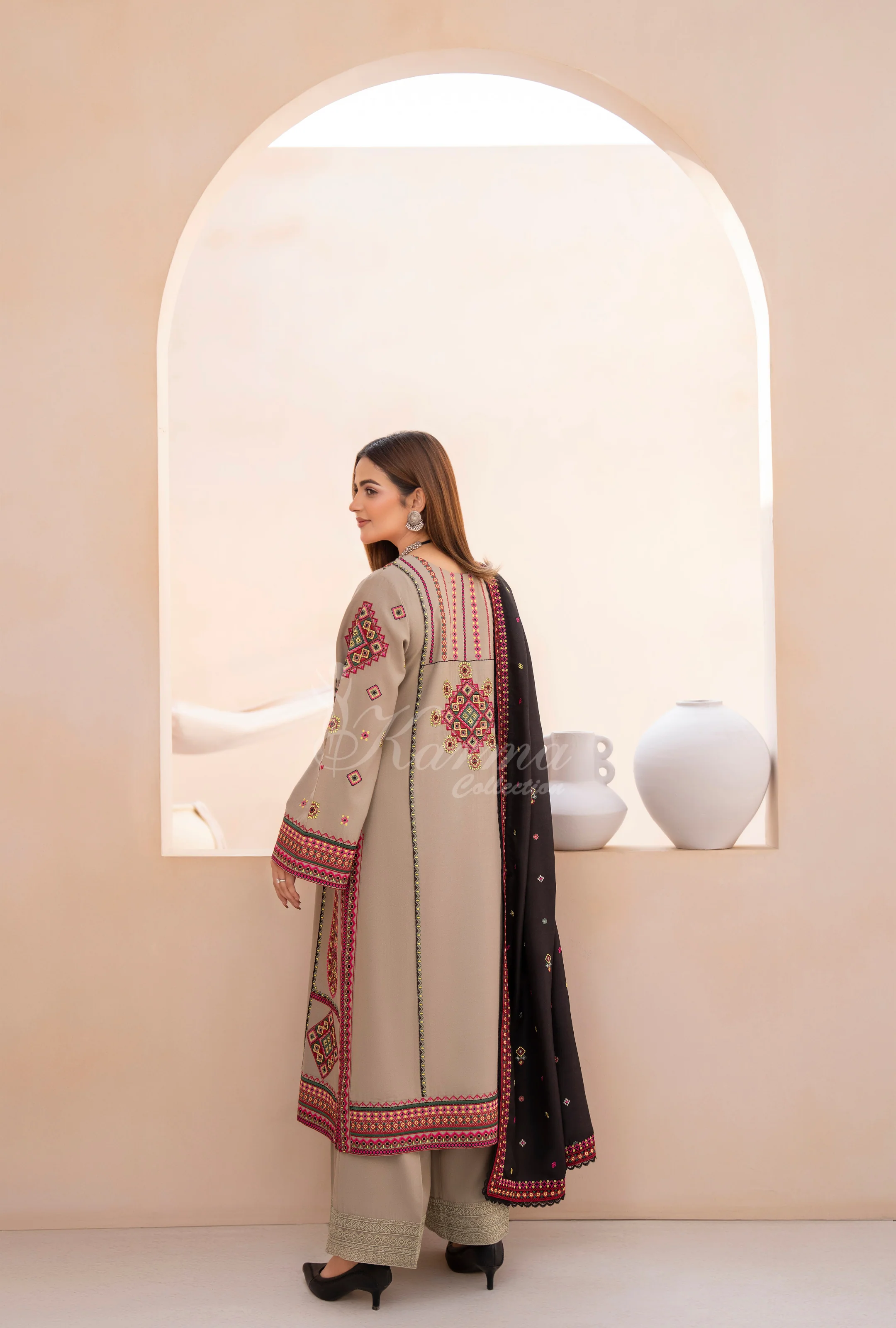 Winter Luxury 3 Piece Embroidered Mishaal Karma CollectionLIGHT OAT SKU:KC-1533