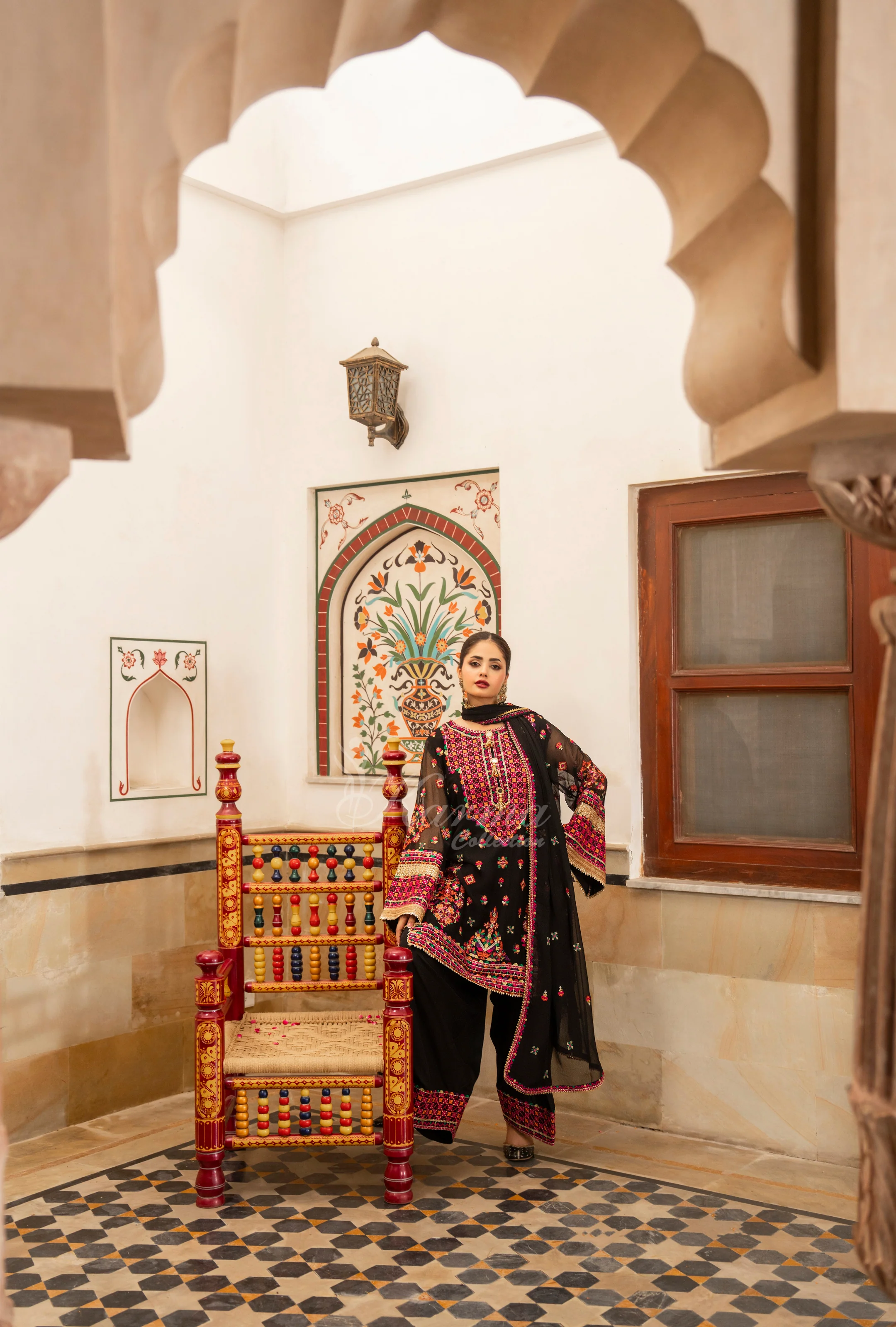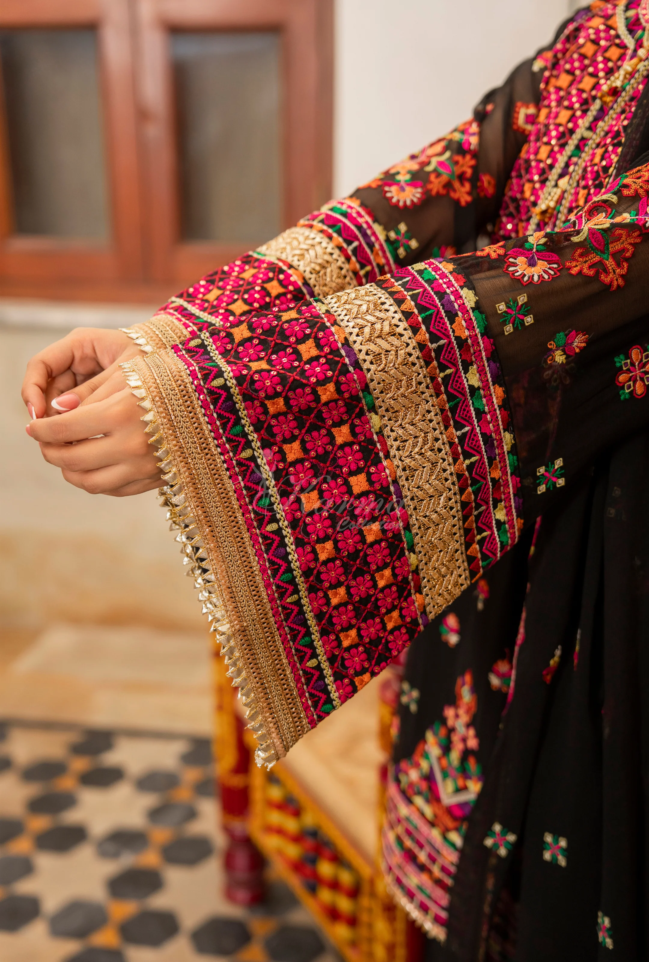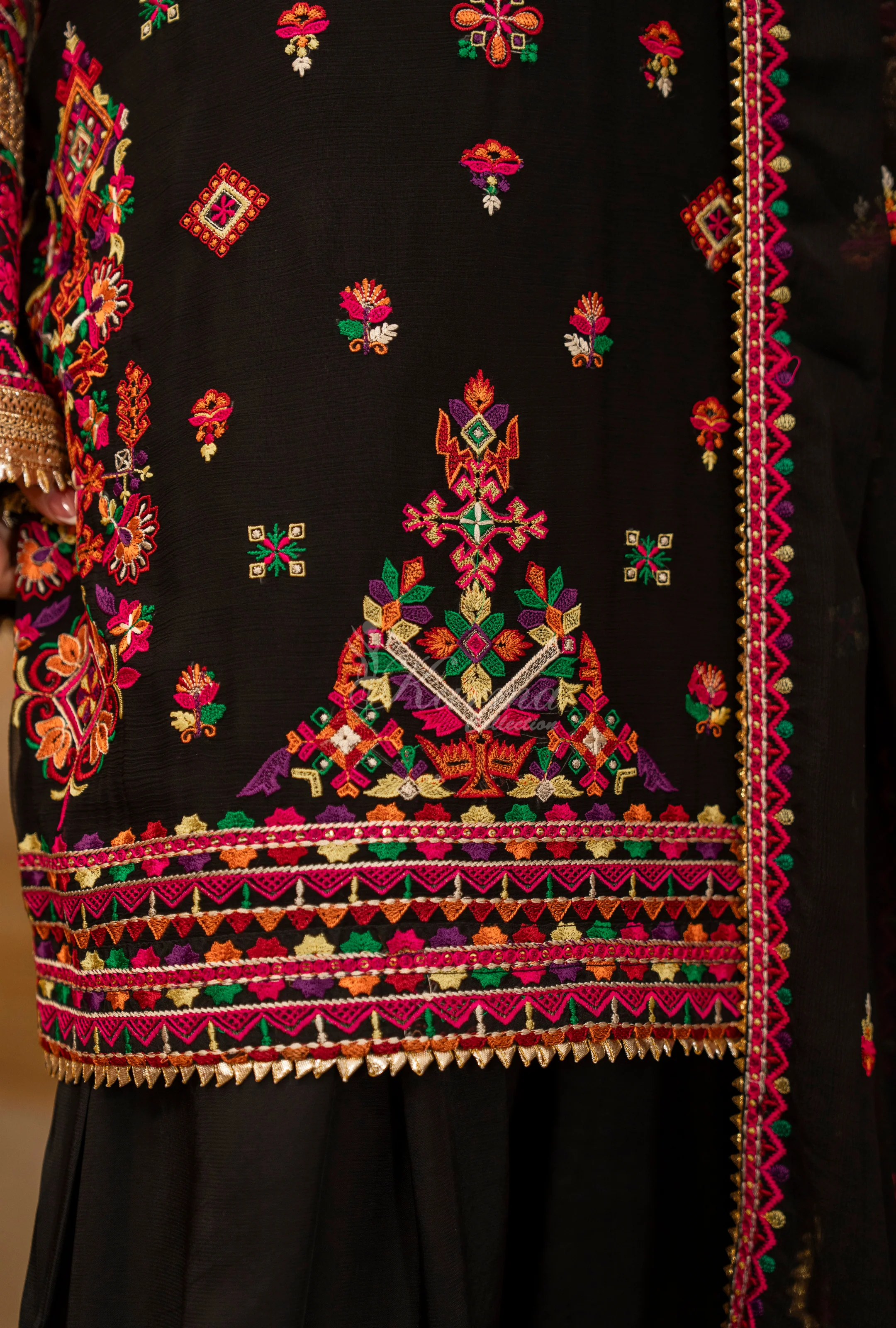 Chiffon 3 Piece Embroidered Hayat Karma Collection PITCH BLACK F-492