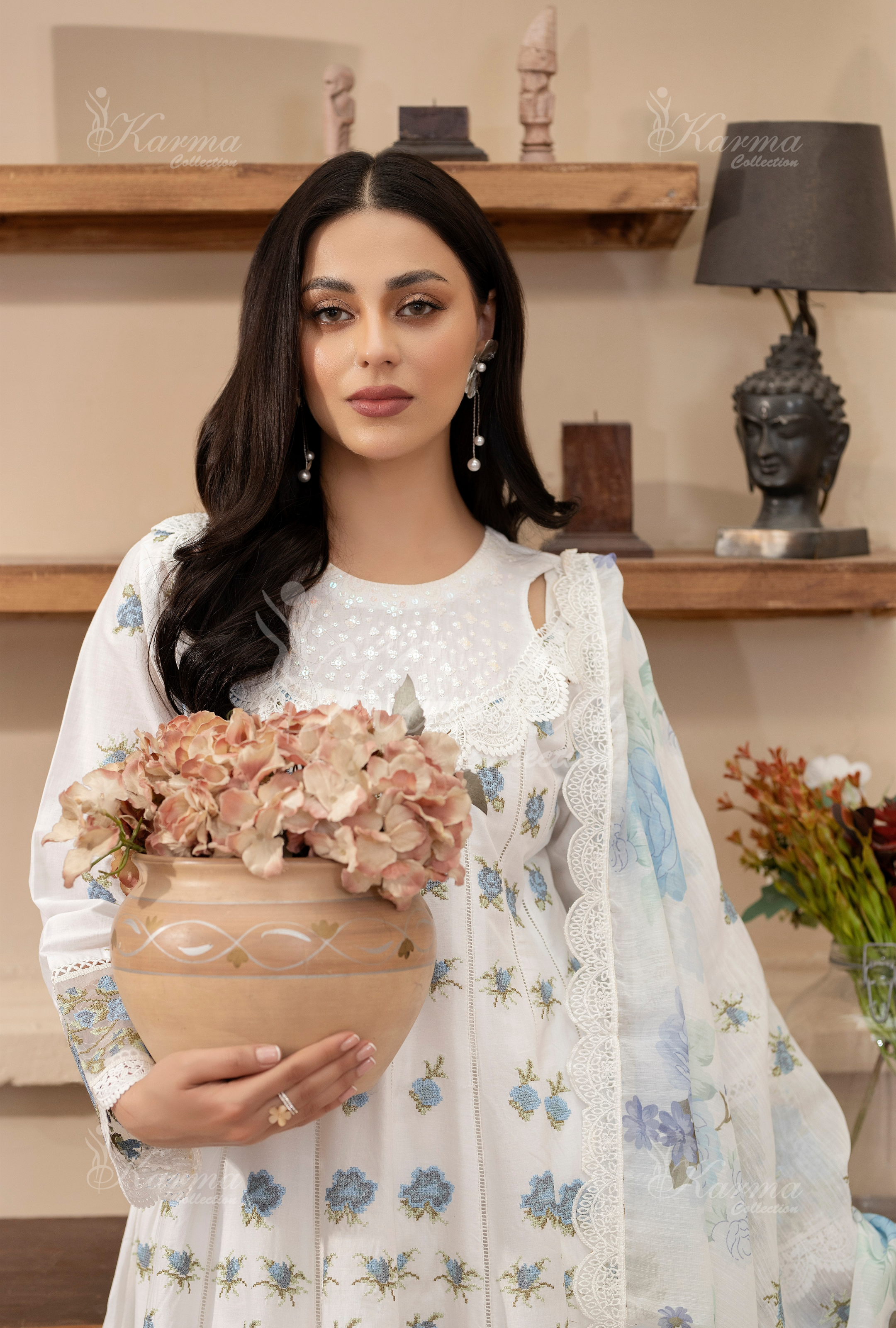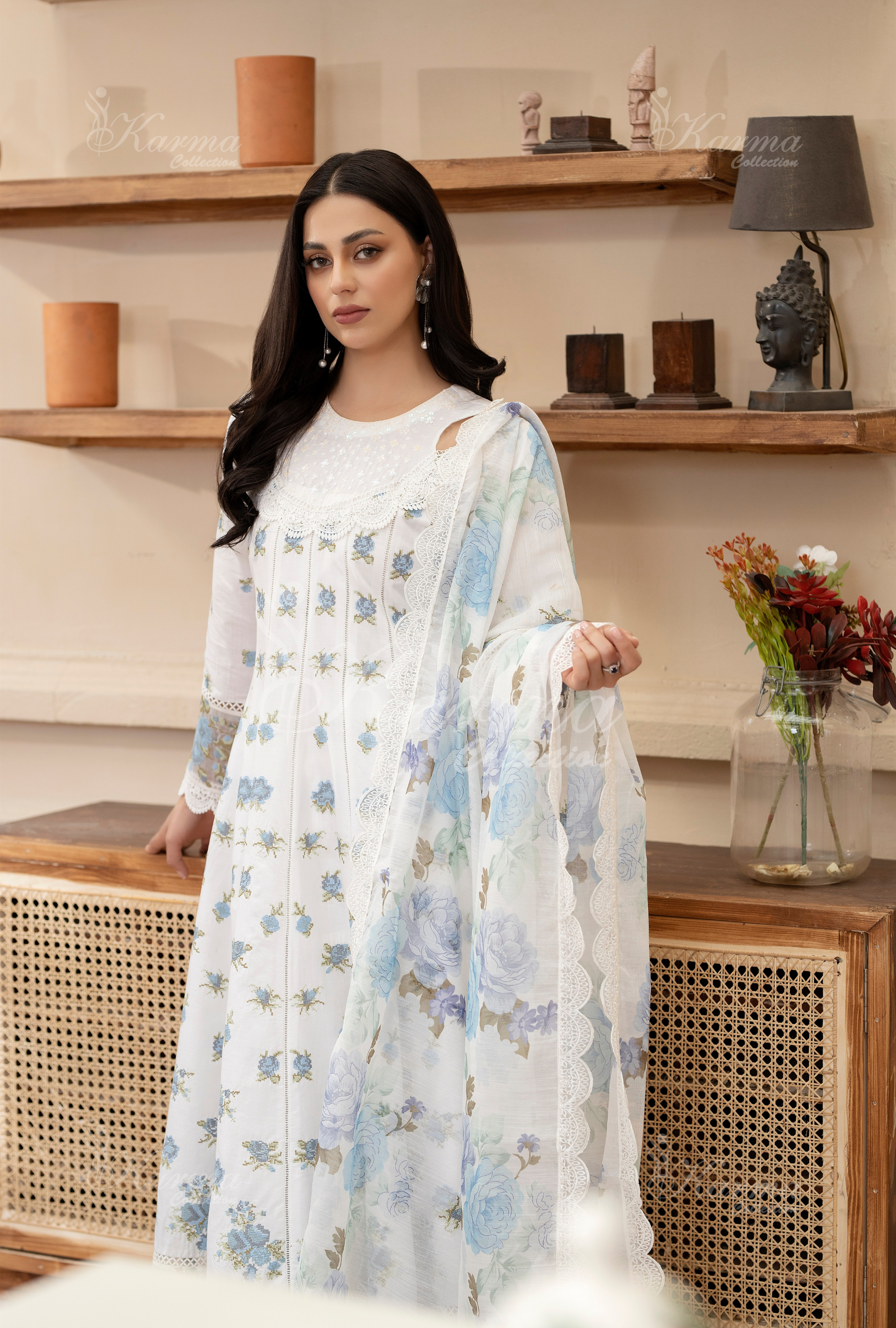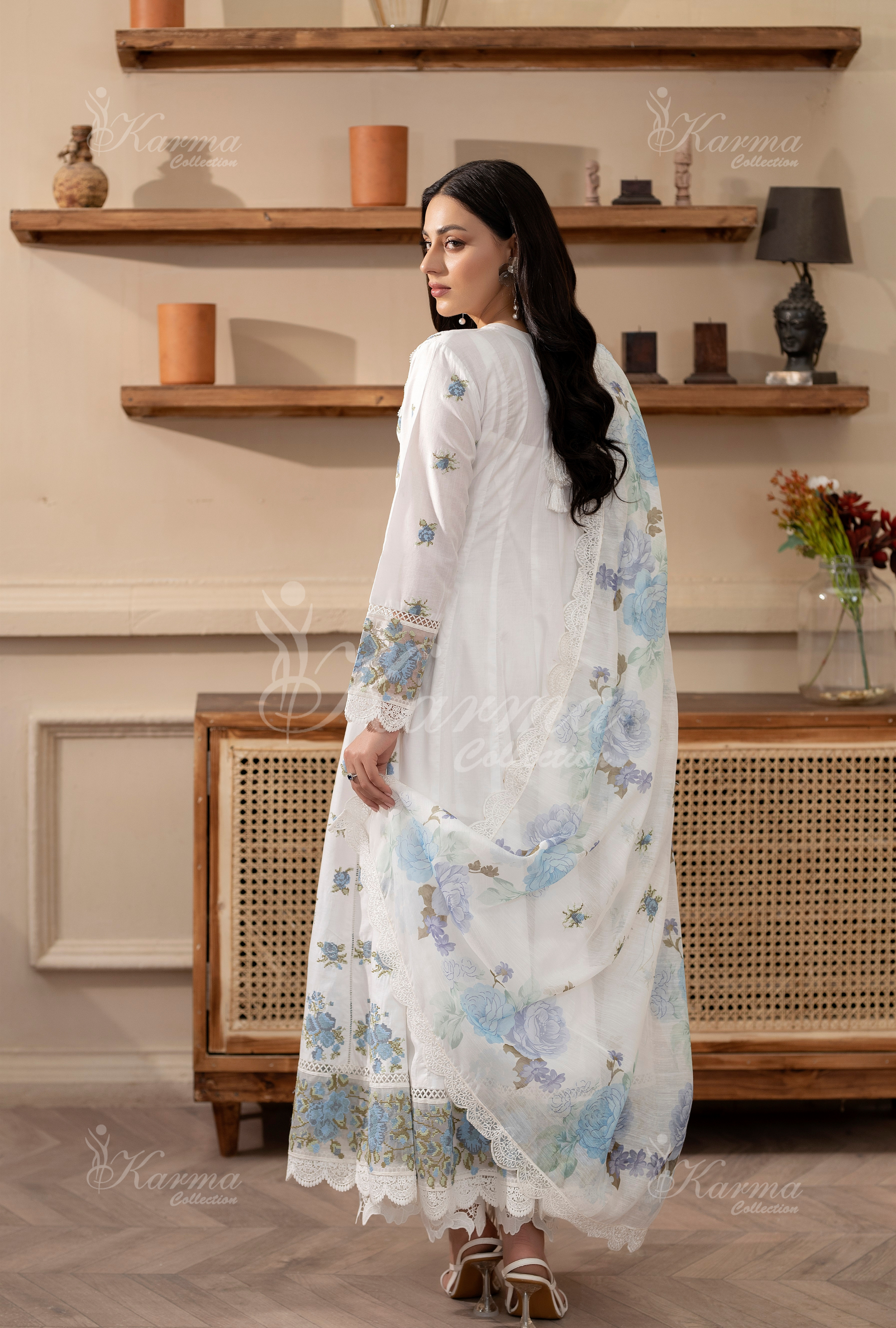 Swiss Munar Dupatta with Cross Stitch Embroidery
